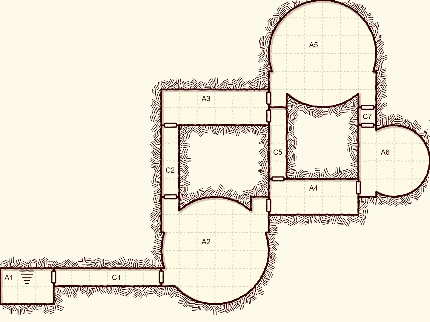 Connect the rooms: branches, loops, chokepoints. We generate the map, encounters, traps, treasure, and descriptions automatically.