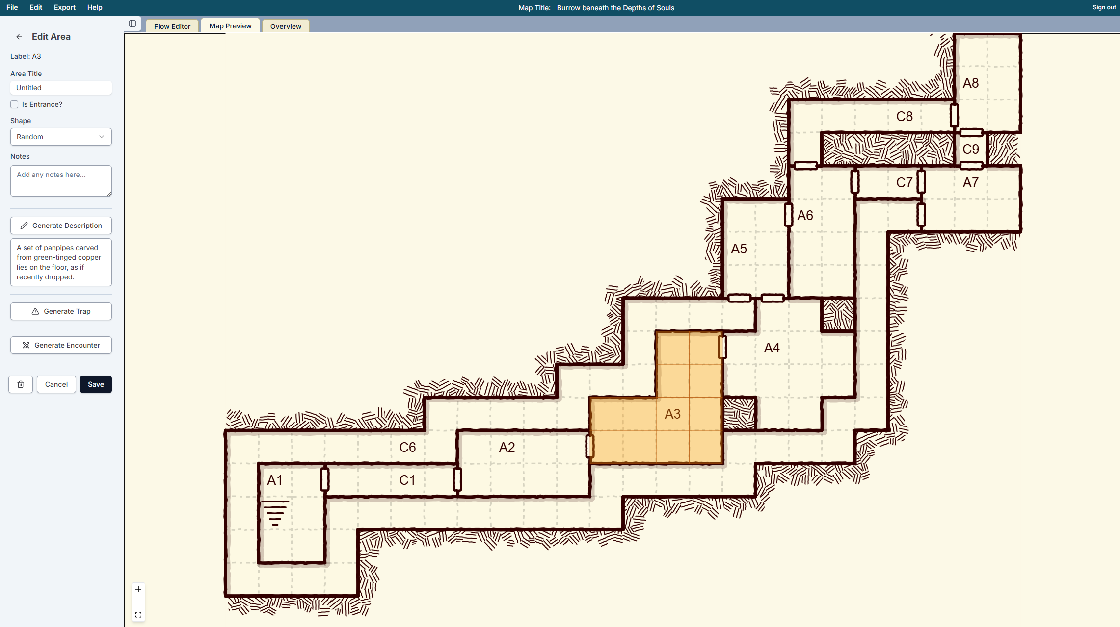 The Map Preview tab now highlights whatever room or corridor you're editing. Click a room to open it and the map lights up that exact spot. Switch to a different room and the highlight moves with you. No more losing track of which room you're working on.