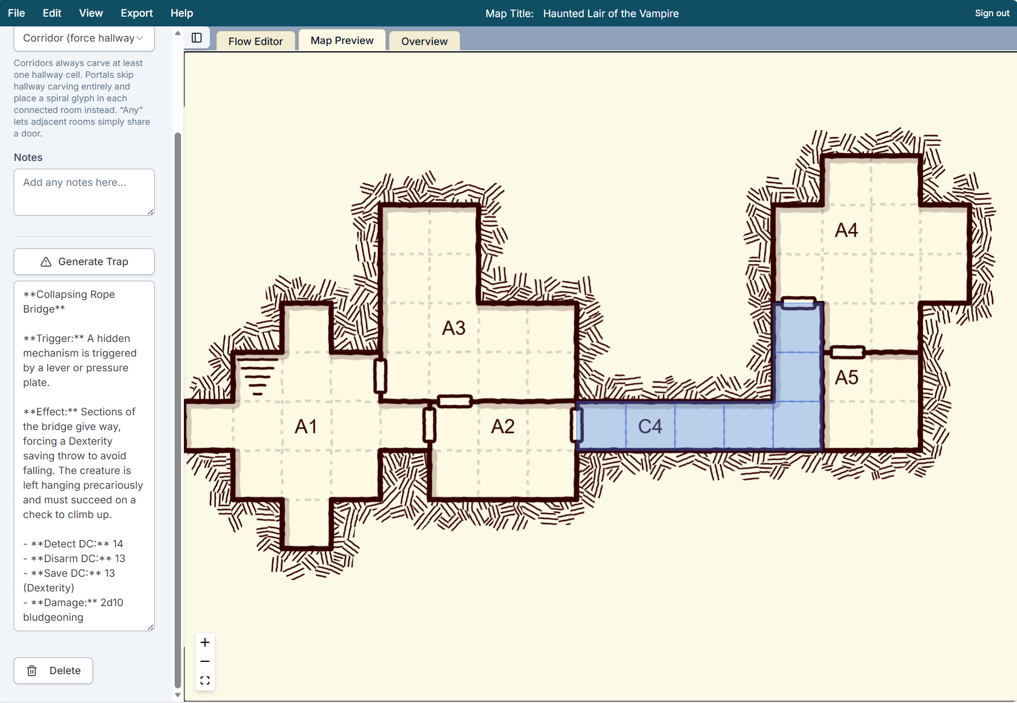 Previously, Dungeon Flow only supported placing traps in rooms. Now it supports adding traps to corridors as well.